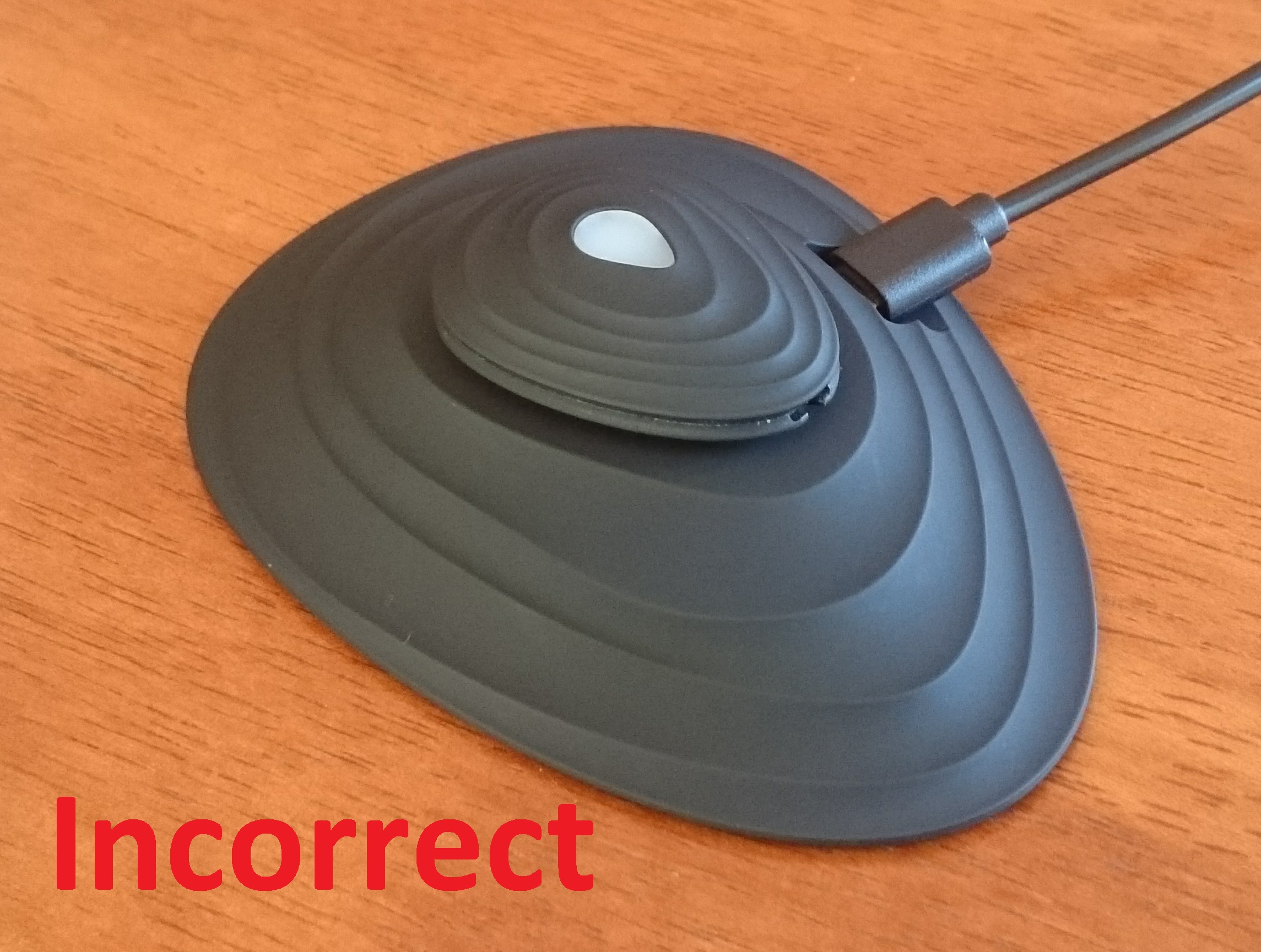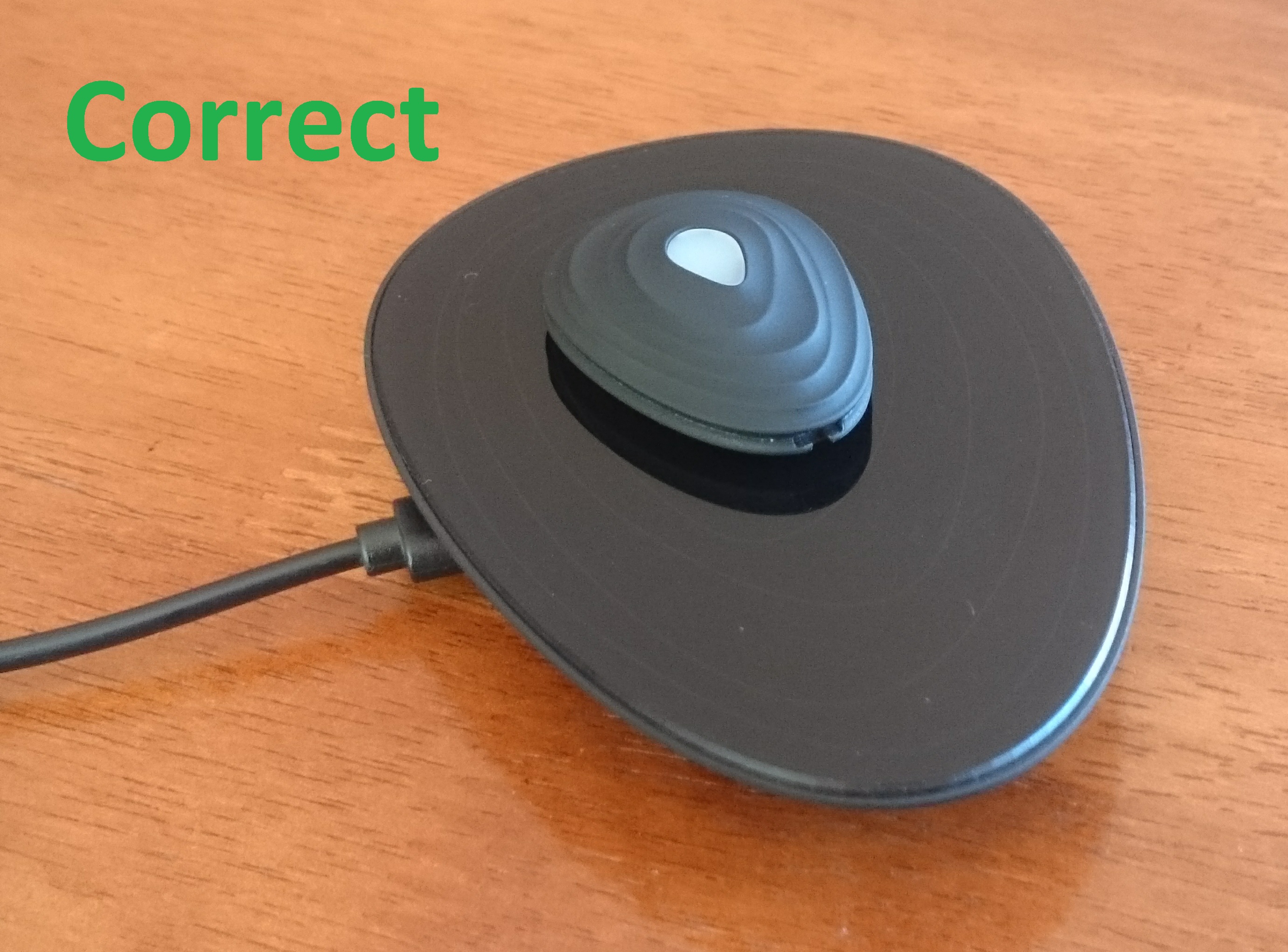 Fortunately, I realised my mistake before being embarrassed on a Skype call. To charge the unit you place it within the feint concentric lines on the flat-side of the base. The distinctive orange LED lights up as it starts charging. The cable is a normal USB plug that can go into any computer, USB hub or wall plug – or even a USB battery pack if you’re in a bind.