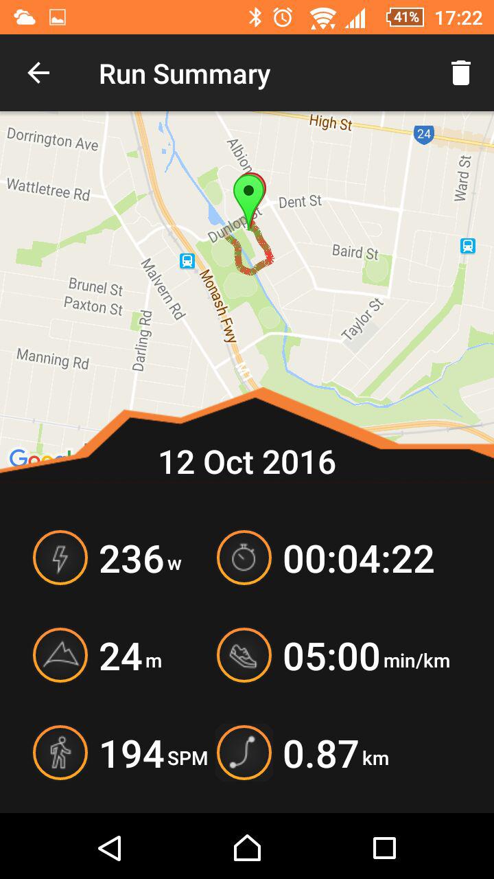 Sync-ing with Movescount I was able to pull the power details across from my 45min moderate run into Powercenter. I then sync-ed the Stryd via the app which automatically combined the two sources of data and added in the Stryd-only metrics of Vertical Oscillation (VO) and Ground Contact Time (GCT). VO and GCT from the Stryd aren’t currently recorded by any watches on the market (although the Garmin HRM-Run pod does generate the same metrics for Garmin users).