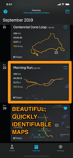 • Heat map for visualizing running stress, duration, and distance in calendar view