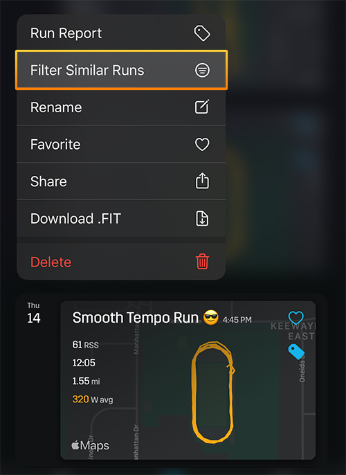 This feature will let you see how you are progressing your fitness across similar runs over time.