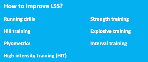 From literature it is known that various training methods may have a positive impact on LSS. This will require consistent training with a multitude of training methods, including not just endurance and interval training, but also running drills, hill training, plyometrics and explosive and strength training, as shown in the box.