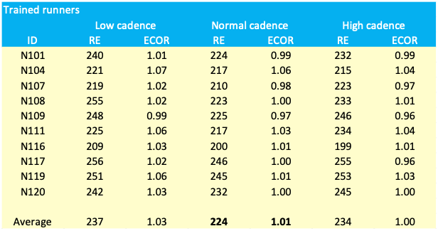 3. The impact of cadence on the running economy (ECOR and RE)