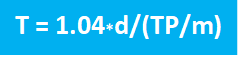 In the new simple formula we have used the value of 1.04, so that the speed can be calculated with the formula: v = P/m/1.04. To determine the time T, we only have to divide the distance d by the speed v, so that the end result becomes: T = 1.04*d/(P/m).