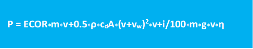 What remains with these simplifications is the comparison: P = ECOR*m*v+0.5*ρ*cdA*v3.