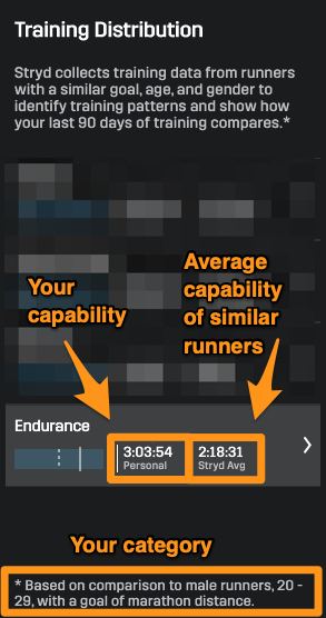 The new Training Distribution feature in the new PowerCenter compares your Fitness, Muscle Power, Stamina, and Endurance against similar Stryders, grouped by age, gender, and race goal.