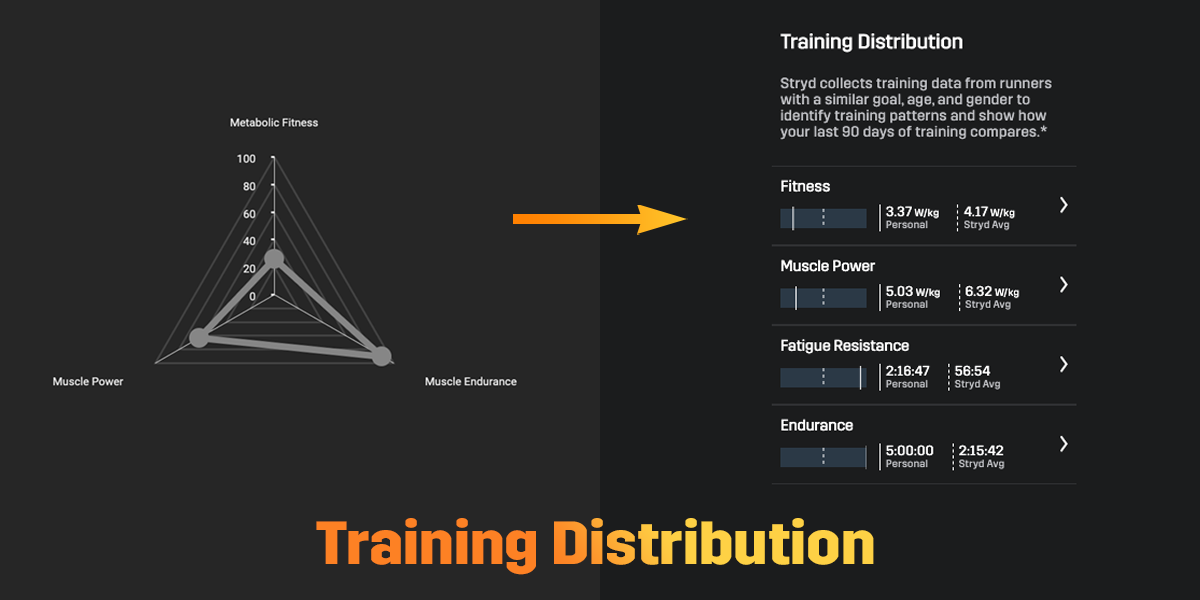 The new “Training Distribution” chart compares your metrics against the Stryd Community in absolute numbers