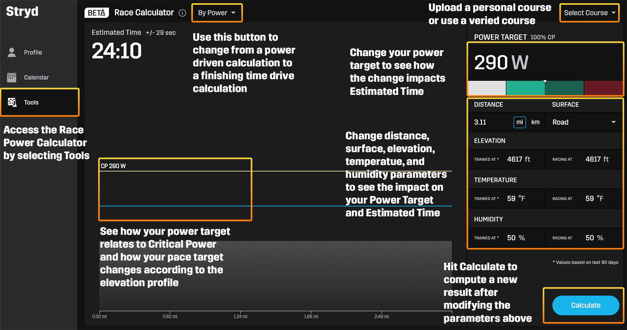 Race Power Calculator is available on the PowerCenter and the Event Planner on the Stryd mobile app on iOS and Android.