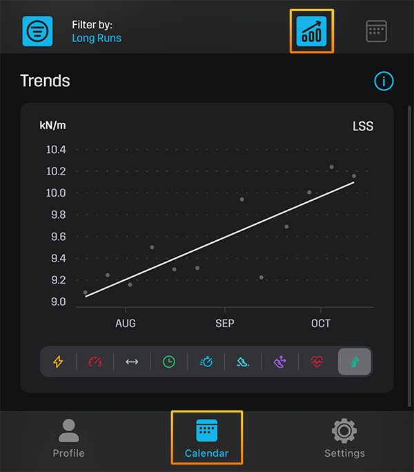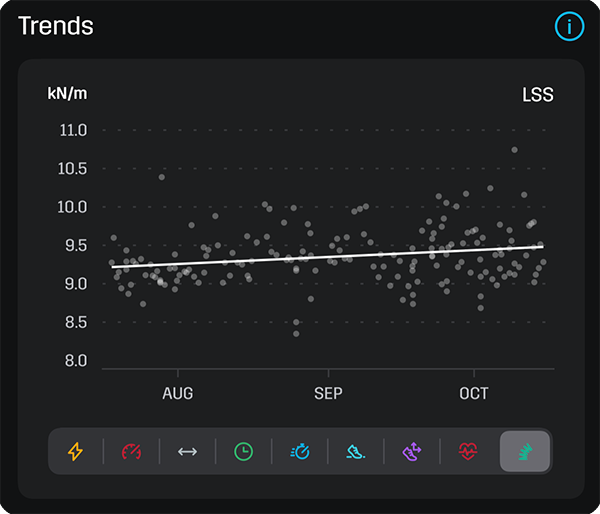 You can quickly flip through trends for all of your Stryd metrics to see which are improving.