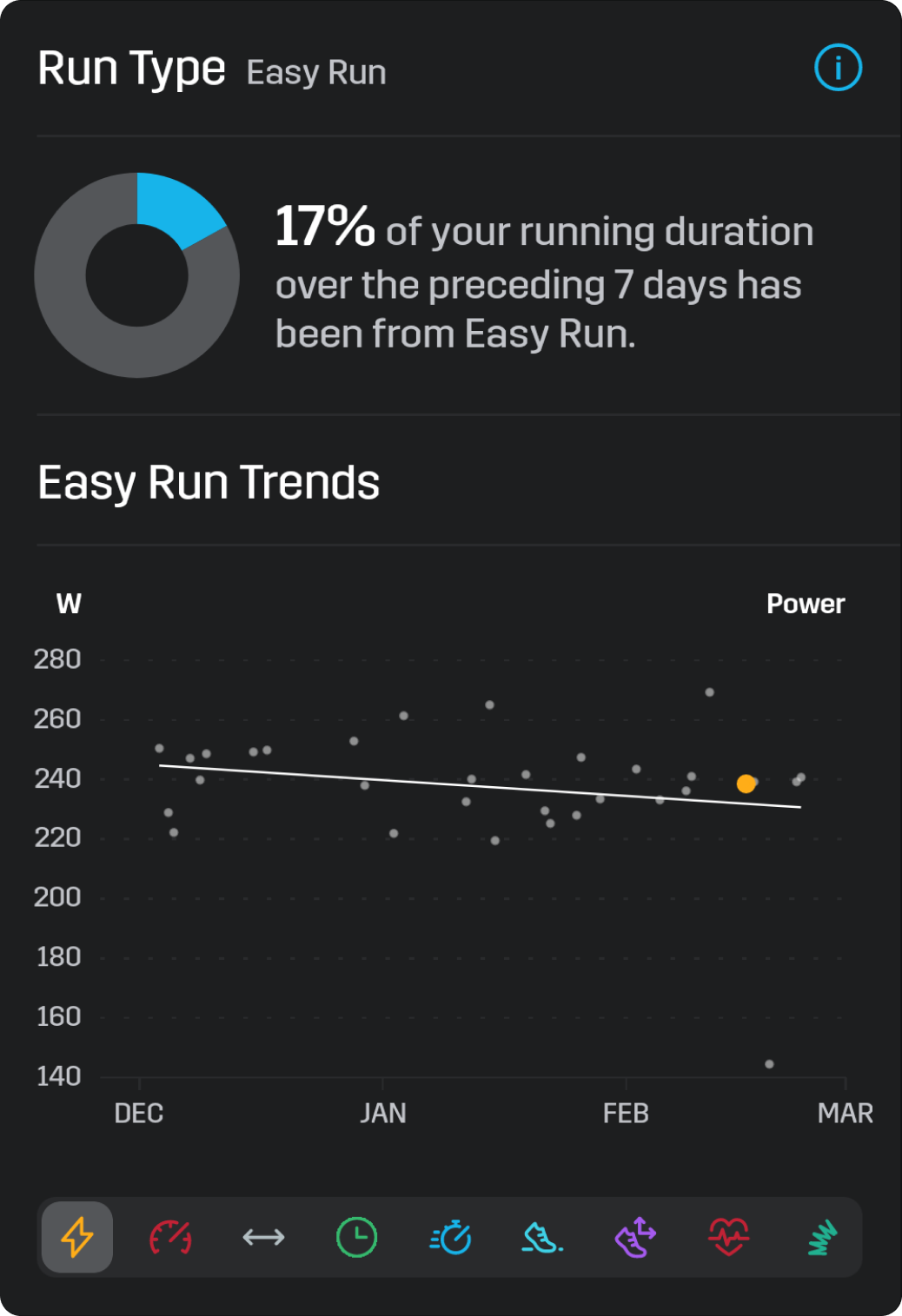 You can quickly see your progress for any of Stryd’s metrics across all run types including easy runs, long runs, recovery runs, and more!