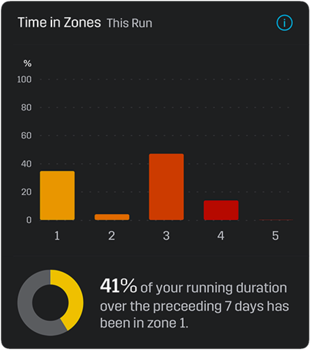 You receive a breakdown of how your effort distributes across each of your five power zones.