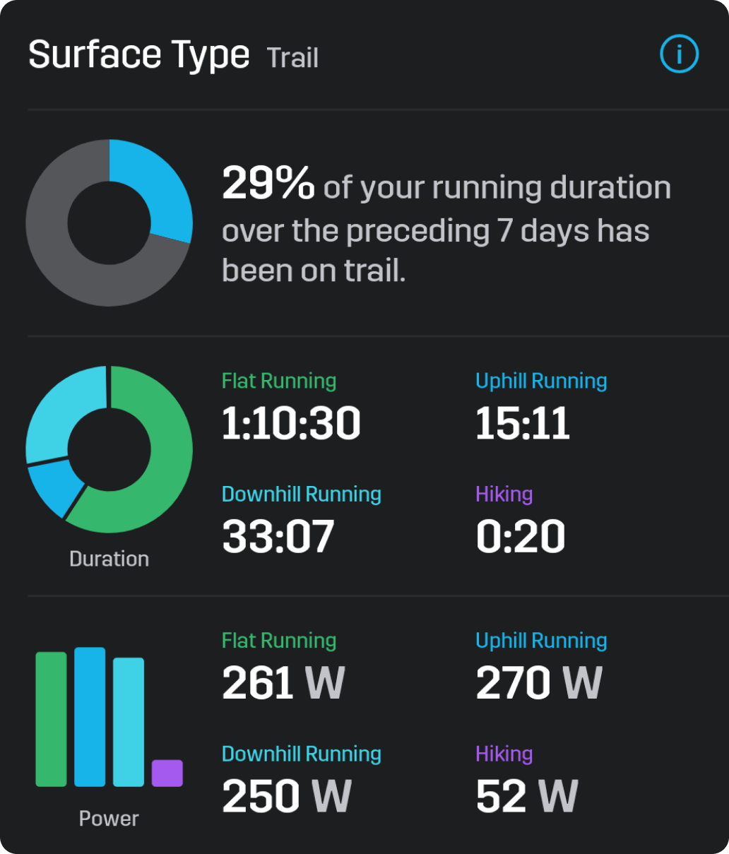 Quantify your training tendencies with Surface Type & Trail Surface Type cards