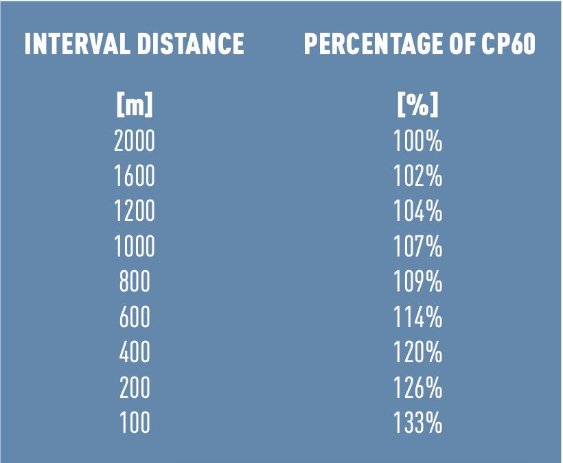 In the table you can see at what percentage of your Critical Power you should target for specific intervals.