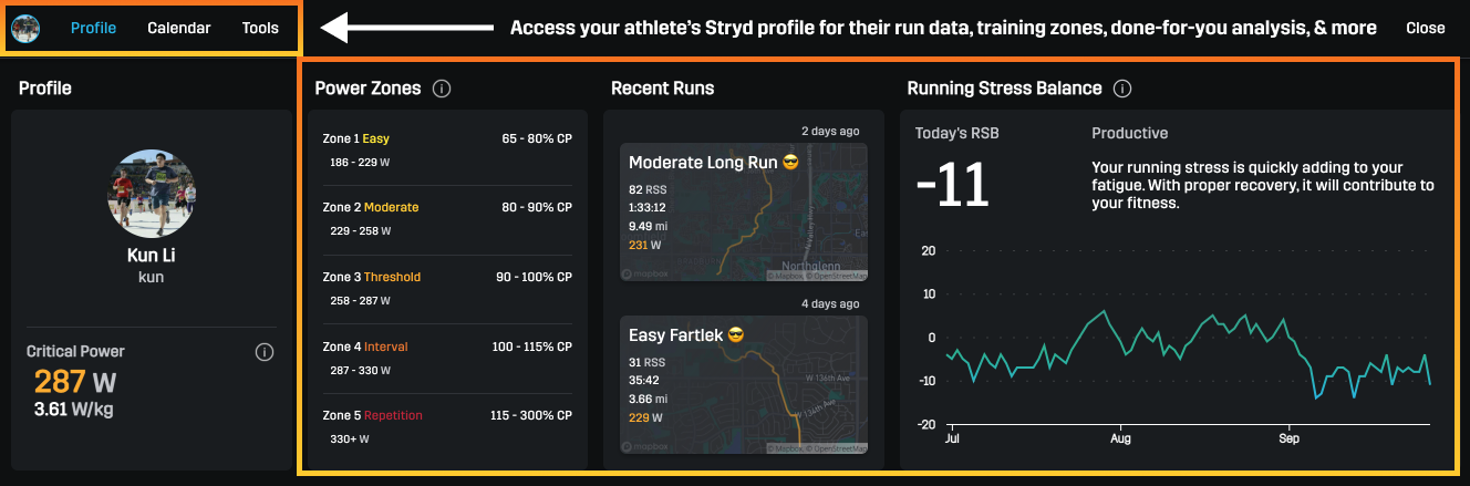 Coach’s View enables your coach to view all the same stats, data, & insights that Stryd gives you on the Stryd PowerCenter.