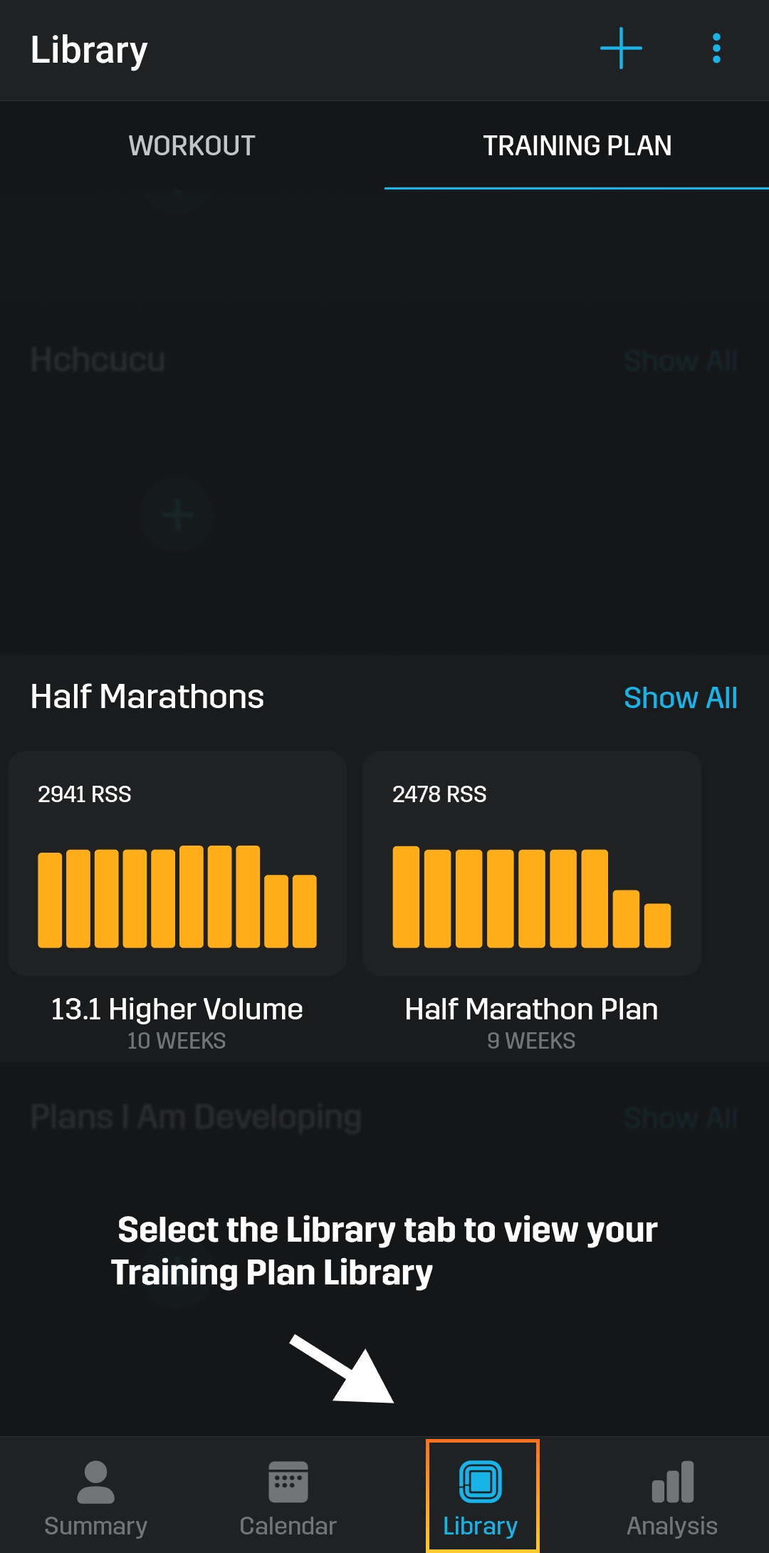 You can access the Training Plan Library by selecting the ‘Library’ tab in the Stryd mobile app & then selecting ‘Training Plans’ in the top navigation bar.