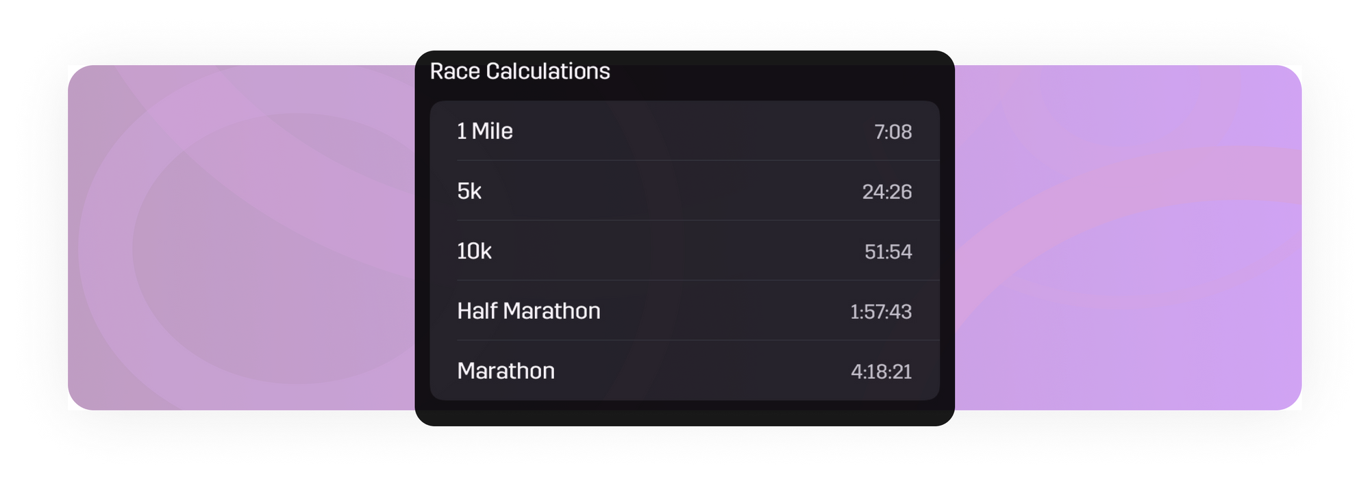 See how your gaining fitness improves your predicted finishing times with the Race Calculations Table