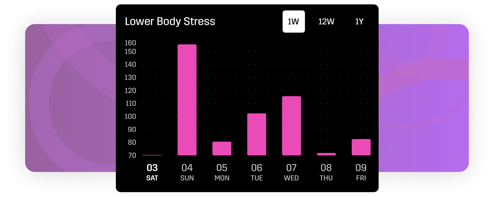 - Monitor for overuse: If you track how your LBSS is trending as compared to a personal baseline, you can identify and work towards a healthier training regimen that reduces chances for overuse. Similarly, if you are coming back from injury and want to gradually transition back to regular training, monitoring LBSS week by week can be helpful to avoid any significant increases in mechanical stress to maintain a healthy recovery.