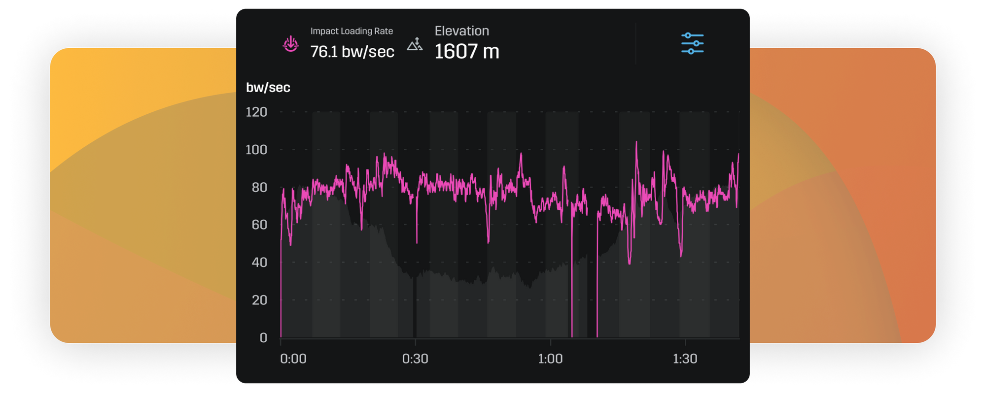 Impact Loading Rate is graphed on a second-by-second basis when viewing your activity on the Stryd mobile app or the Stryd PowerCenter.