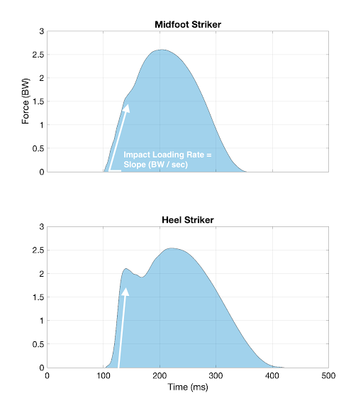 In other words, Impact Loading Rate is how quickly your body is absorbing vertical force when your foot first hits the ground. Impact Loading Rate will also be generally larger for people who heel-strike than for people with other foot-strike patterns.