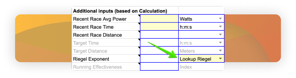 Super Power Calculator is a spreadsheet tool that gives you access to the formulas to determine your race finishing time using parameters such as Running Effectiveness, your fatigue factor (Riegel Exponent), and Reserve Work Capacity.