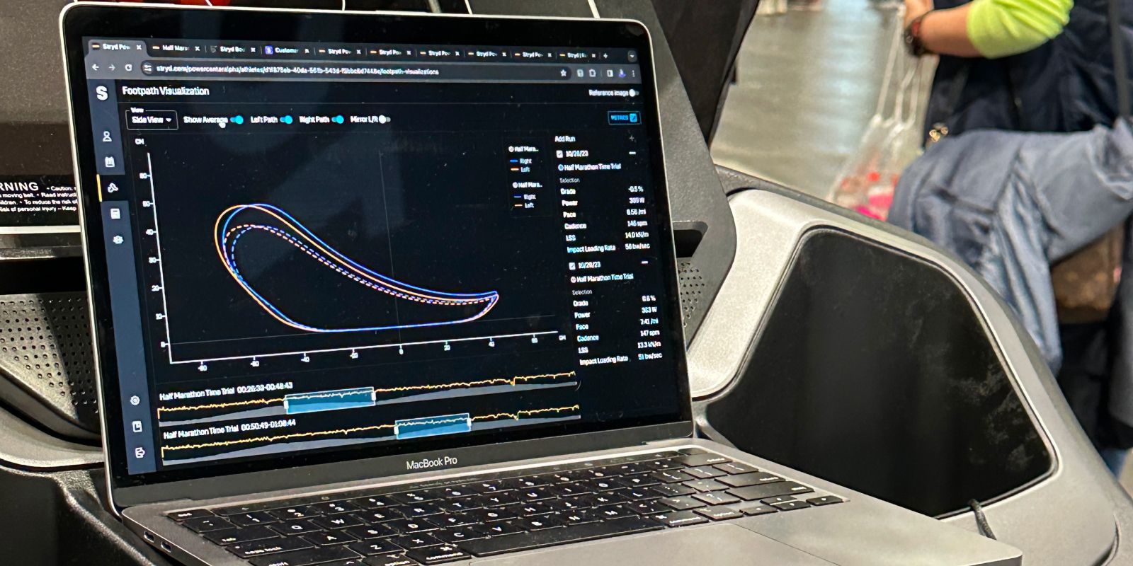 Runners were able to instantaneously see the variation in their footpaths, toggle between multiple views for a holistic analysis of their gait, and even retest on the treadmill to observe if deliberate modifications to their stride were captured and reflected by Stryd Footpath.