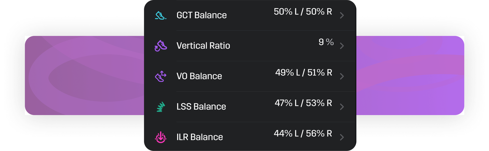 Stryd Duo delivers new biomechanical metrics tracking the differences between the left and right side of your body. These new “balance” metrics are being delivered with leading, Stryd-fidelity for the first time, allowing you to track your trends over time to learn more about your running progression and to understand quantitatively what works best for you.