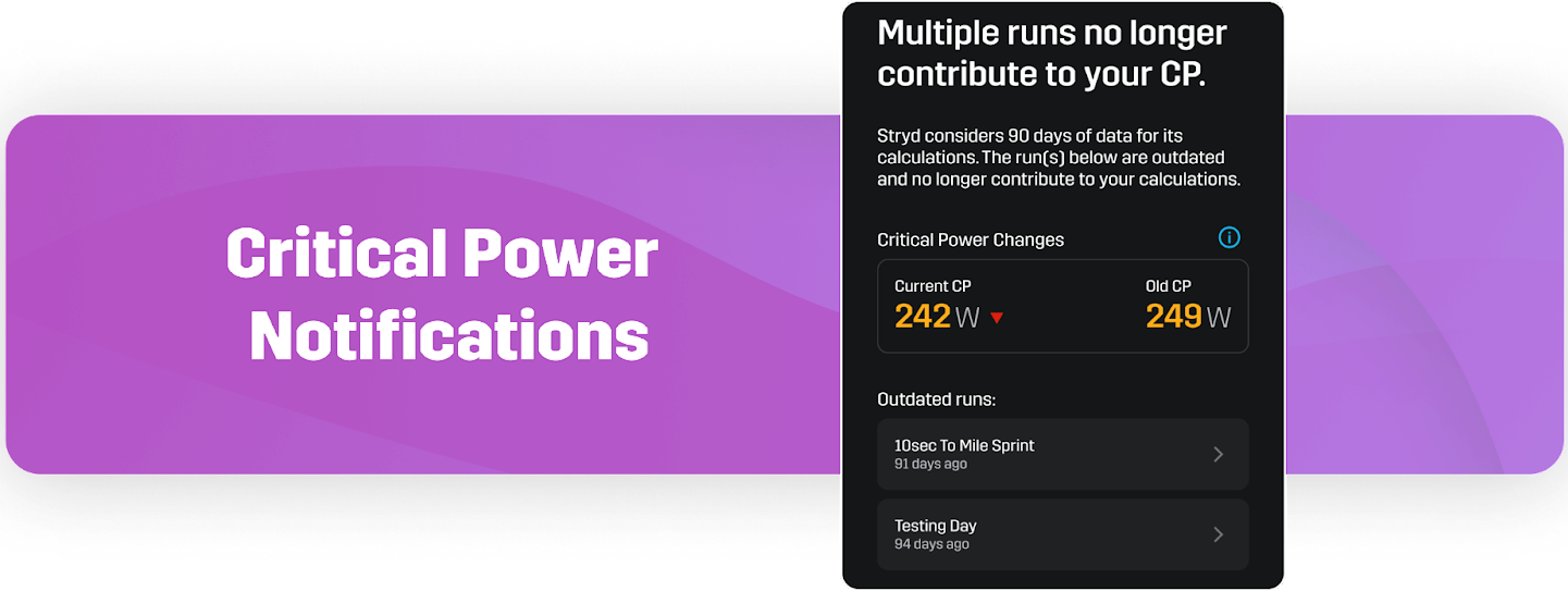 We are thrilled to introduce an new update to your Stryd experience – a new feature that provides notifications about changes in your Critical Power & explanations on why your Critical Power has changed.