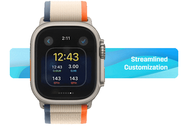With our latest update, configuring your data display is as simple as a few taps directly on your Apple Watch screen. All available metrics are now visually presented, allowing you to quickly swap out data fields in real time.