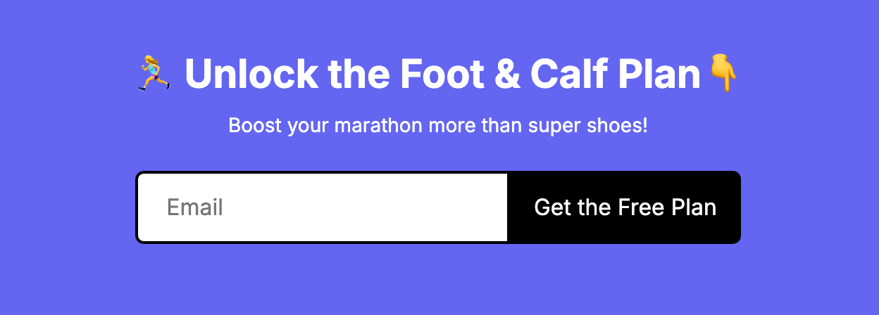 My 8-week Calf and Foot Training Plan has helped hundreds of runners slash their PRs. Last month alone, three athletes knocked 8+ minutes off their marathon times.
