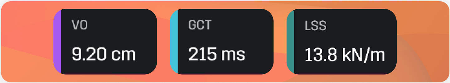 - Leg Spring Stiffness: Measures how efficiently your legs store and return energy