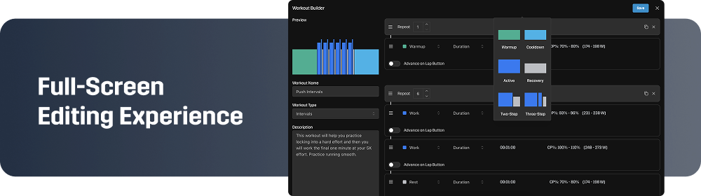 The Workout Builder and Editor bring a game-changing level of control to your training.