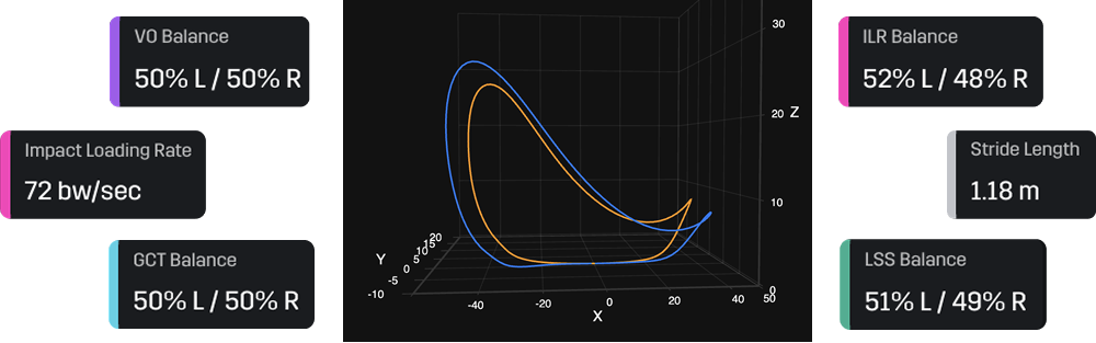 The balance metrics revealed subtle compensation patterns that would have been invisible with traditional single-point measurement. This data showed exactly how Clayton was adapting his running mechanics to manage the strain and maintain performance despite the discomfort.