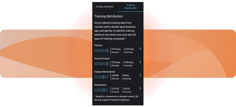 Stryd’s Training Distribution Chart helps you understand how your training compares, revealing where you excel and where you can improve so you can target workouts more effectively, build fitness, and make steady progress toward your goals.