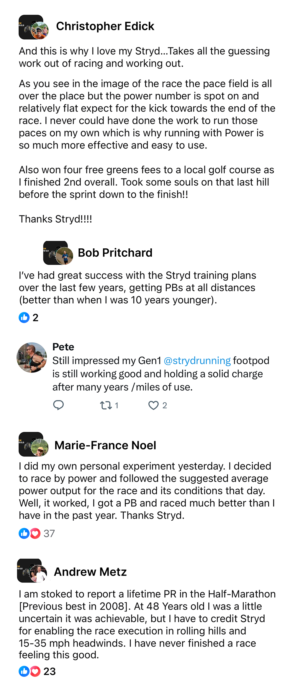 With Stryd, they’re building fitness with purpose, executing workouts with confidence, and showing up on race day ready to perform. From first breakthroughs to new PRs, these are the stories of runners getting more out of every mile with data they can trust.