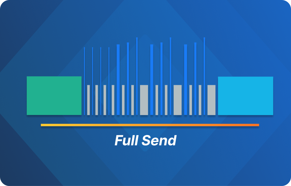 Full Send is a speed session designed for 5k runners to elevate top end speed and improve fatigue resistance. It begins with four sets of twenty second strides with sixty second recovery jogs, then moves into four sets of seventy five seconds at your 5k power, forty five seconds at your 3k power, and thirty seconds at your 3k to mile power to close each set. These progressive intervals sharpen your ability to handle shifting intensities, maintain speed, and finish strong. Add this workout in place of a similar speed workout or tailor it in the workout builder by adjusting the number of sets to fit your training needs.