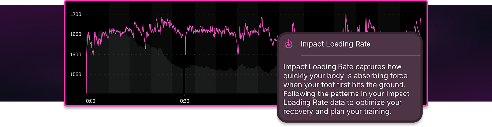 Lower Body Stress Score (LBSS) captures the mechanical side. It accumulates your Impact Loading Rate (ILR) relative to your Critical Impact, which is your ILR when running at CP on flat ground. One hour at Critical Impact gives roughly 100 LBSS. Think of it as how much structural stress your tissues absorb.