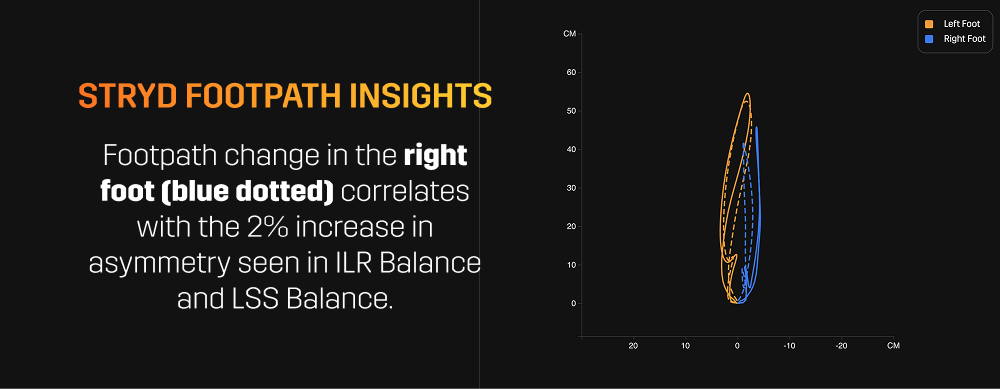 These insights point directly to the next step, helping guide how he can refine training, manage load, and continue reducing asymmetry in future cycles.